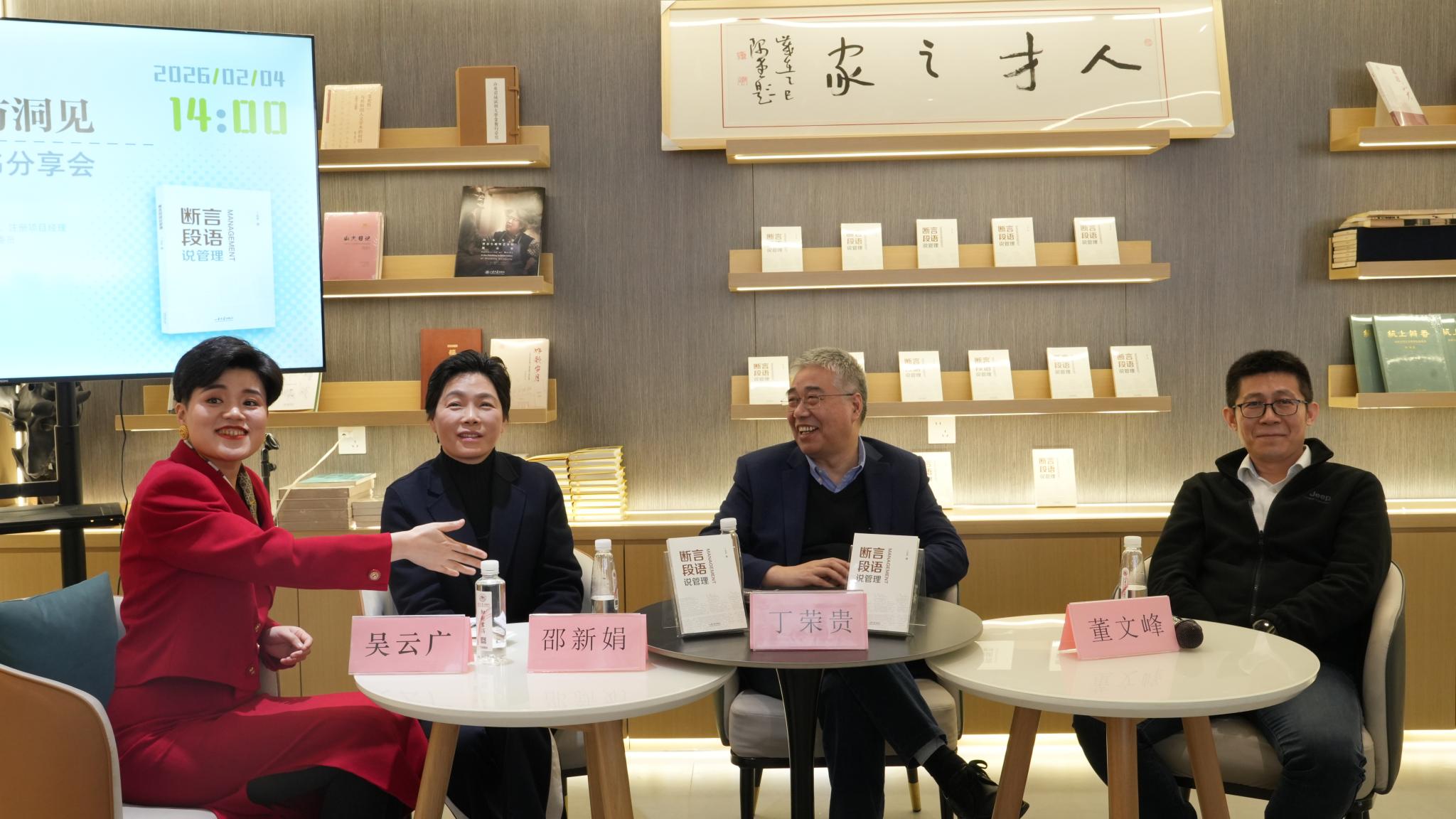 2月4日下午,山东大学管理学院院长丁荣贵《断言段语说管理》新书分享会在济南知新书店举行。本次活动由山东大学出版社主办,管理学院师生代表、各级校友、企业嘉宾及学界、业界同仁到场参与。丁荣贵结合多年理论研究与企业实践积淀,推出《断言段语说管理》这本别具一格的管理随笔集。书中摒弃传统管理学著作的繁复体系,转而以“断言”与“段语”的形式,用精炼、犀利又不失温度的语言,揭示管理的本质逻辑,并将其延伸至日常...