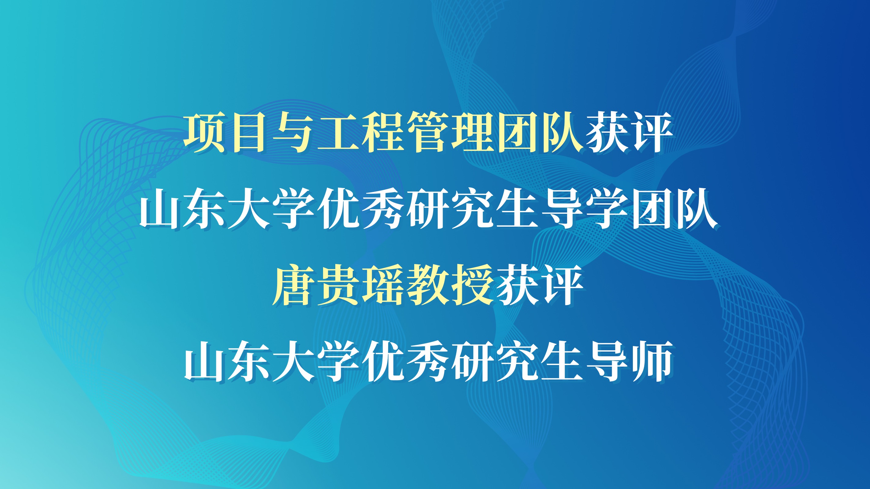 近日,山东大学公布优秀研究生导学团队和优秀研究生导师评选结果,由丁荣贵教授带领的“项目与工程管理团队”获评“山东大学第三届优秀研究生导学团队”,唐贵瑶教授荣获2025年度“山东大学优秀研究生导师”称号,并被推荐参评“山东省优秀研究生导师”。项目与工程管理团队和唐贵瑶教授此次获评,是管理学院深入推进研究生教育综合改革、构建高水平人才培养体系的最新成果。学院将进一步发挥优秀导师和优秀团队的示范引领作用...