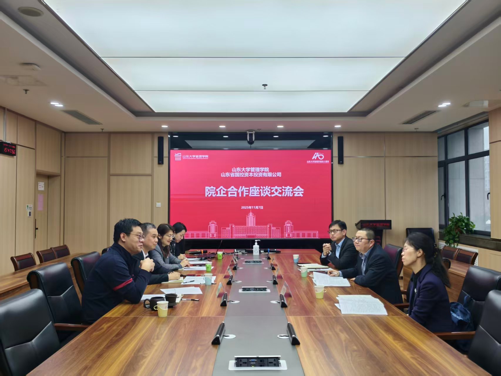 11月7日,管理学院与山东省国控资本投资有限公司开展院企合作座谈交流会。国控资本党委副书记、工会主席贾万程,党委组织部部长何菲菲,山东融越网络小额贷款有限公司总经理安海宁;管理学院党委书记付岩志、党委副书记李抗、副院长张晓峰等参与座谈。付岩志系统介绍了学院在学科建设、师资队伍建设等方面的成果与规划,时值建院四十周年,学院通过举办各类院庆系列活动,展现了办学成就,凝聚了各界力量。他强调,学院将始终以...