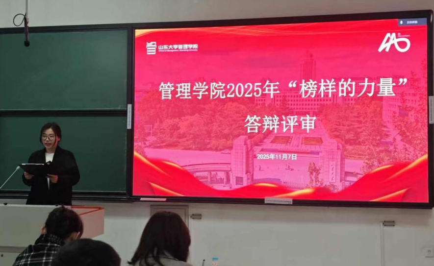 为进一步加强思想引领,发挥榜样模范作用,形成奋发向上、互相学习的良好校园风气,11月7日,山东大学管理学院举办2025年度“榜样的力量”答辩评审会。党委副书记李抗出席会议。答辩会前,主持人对评选规则、答辩要求、投票规则进行说明。根据前期学生自主申报、基层团支部推选、学院审核,共有22人参与本次答辩评审,其中本科生16人,研究生5人,团队1支,分为思想引领、学术科研、创新创业、实践服务和校园文化五个类别。科学...