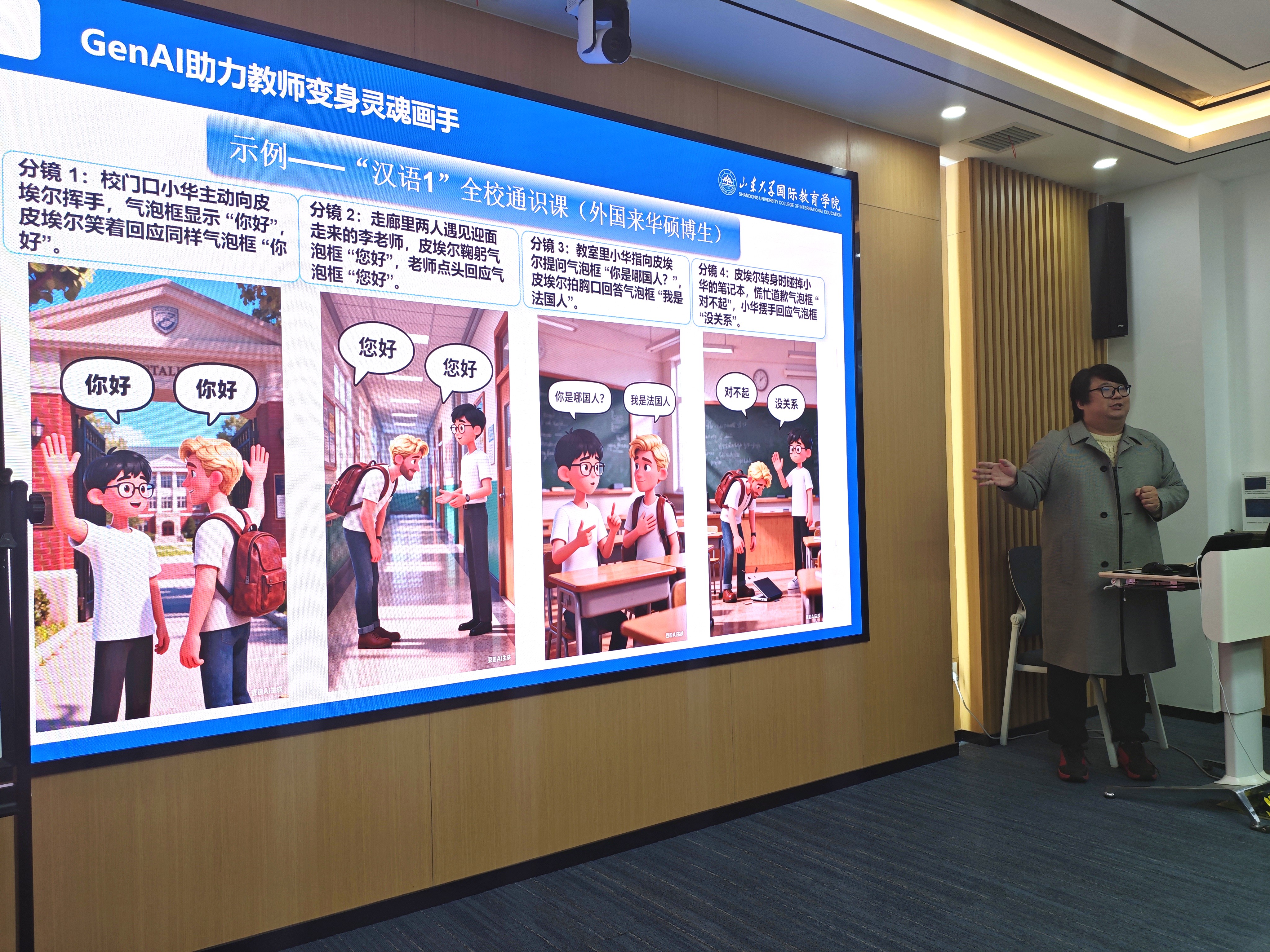 张斌助理教授以《GenAI在教学与科研中的应用—实用工具与策略》为题,从“善用AI评价教与学”“ 巧用AI建教学资源”“活用AI赋能教与研”“妙用AI助工作减负”等方面,详细展示了如何借助DeepSeek、通义千问、星火科研助手、豆包、Kimi、可灵、有言等国产大模型工具,开展课堂评价、教学资源生成、科研文献阅读与数字人讲课等创新实践。为教师们提供了系统掌握AI工具的路径和方法,帮助大家在教学设计、科研思路拓展及学术表达优化等方面拓宽视野。