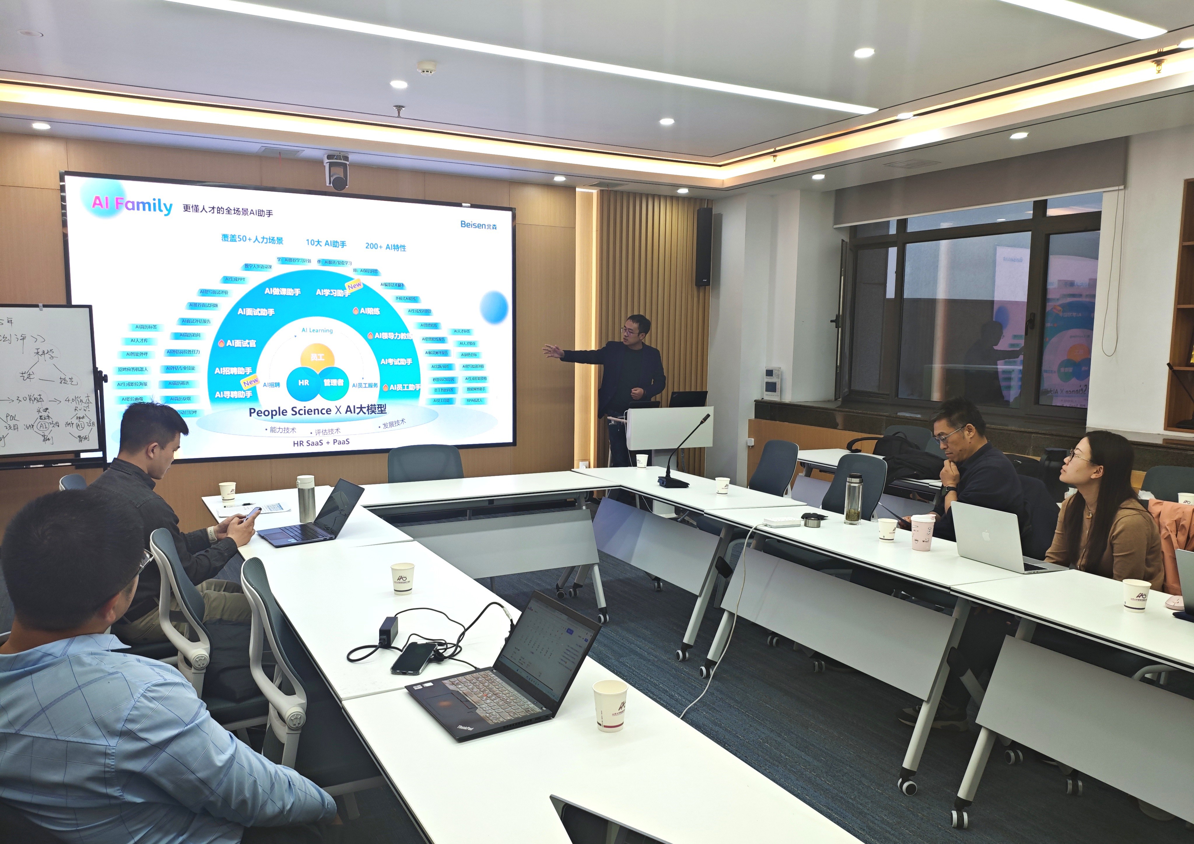 王士昆则以《更懂人才的全场景AI助手》为主题,介绍了AI在人才招聘、员工培训与学习发展中的场景化解决方案。他展示了北森在AI面试官、AI学习助手、AI陪练等产品中的应用案例,阐释了AI如何通过智能化评估、个性化学习与沉浸式训练,助力组织人力资源管理的数字化转型。