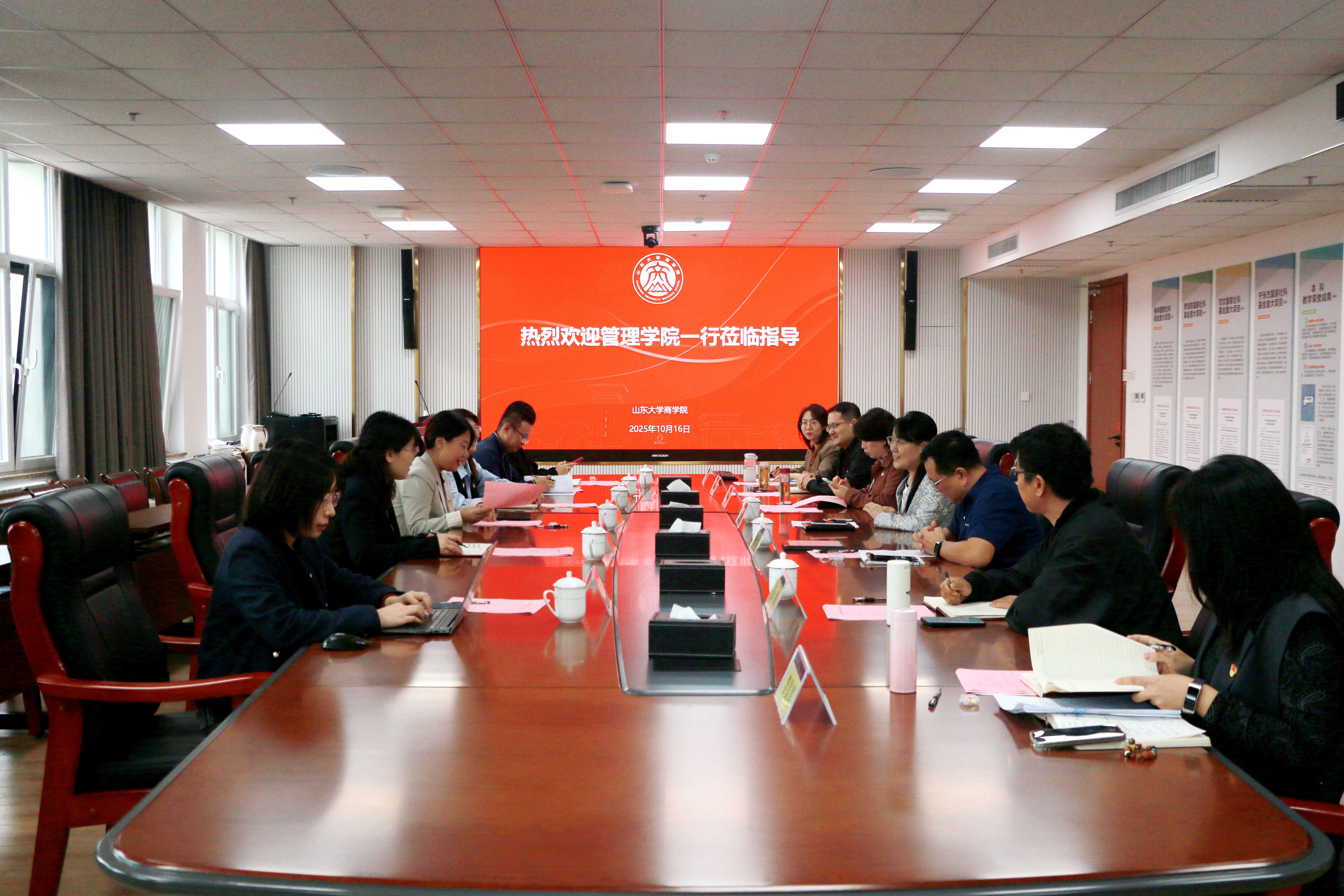10月16日,山东大学管理学院机关教工第一党支部赴威海校区,与商学院行政教工党支部联合开展党建共建活动。商学院党委书记于培丽,党委副书记郭晓妮、韩鲁青;管理学院党委副书记周琳、李抗出席活动。