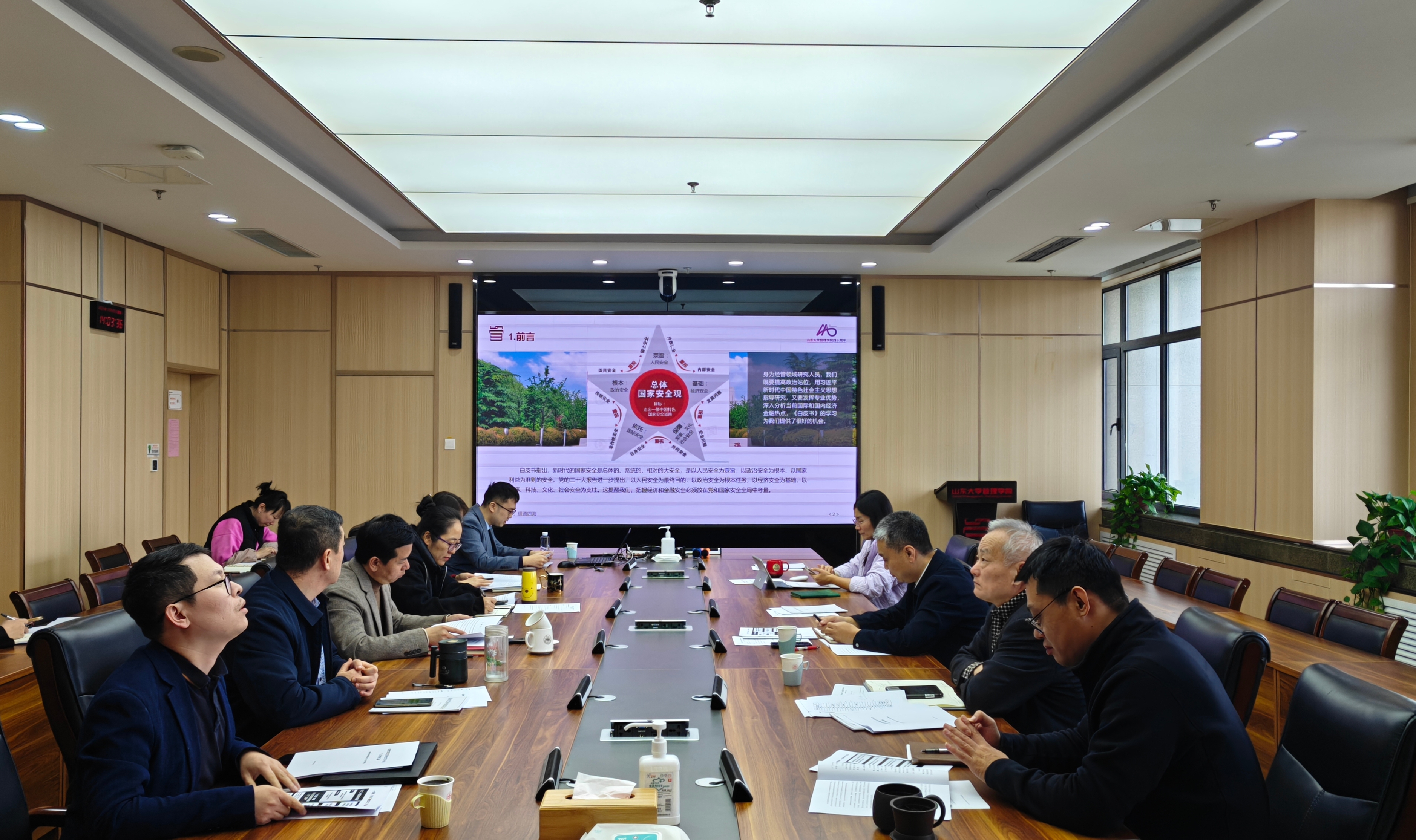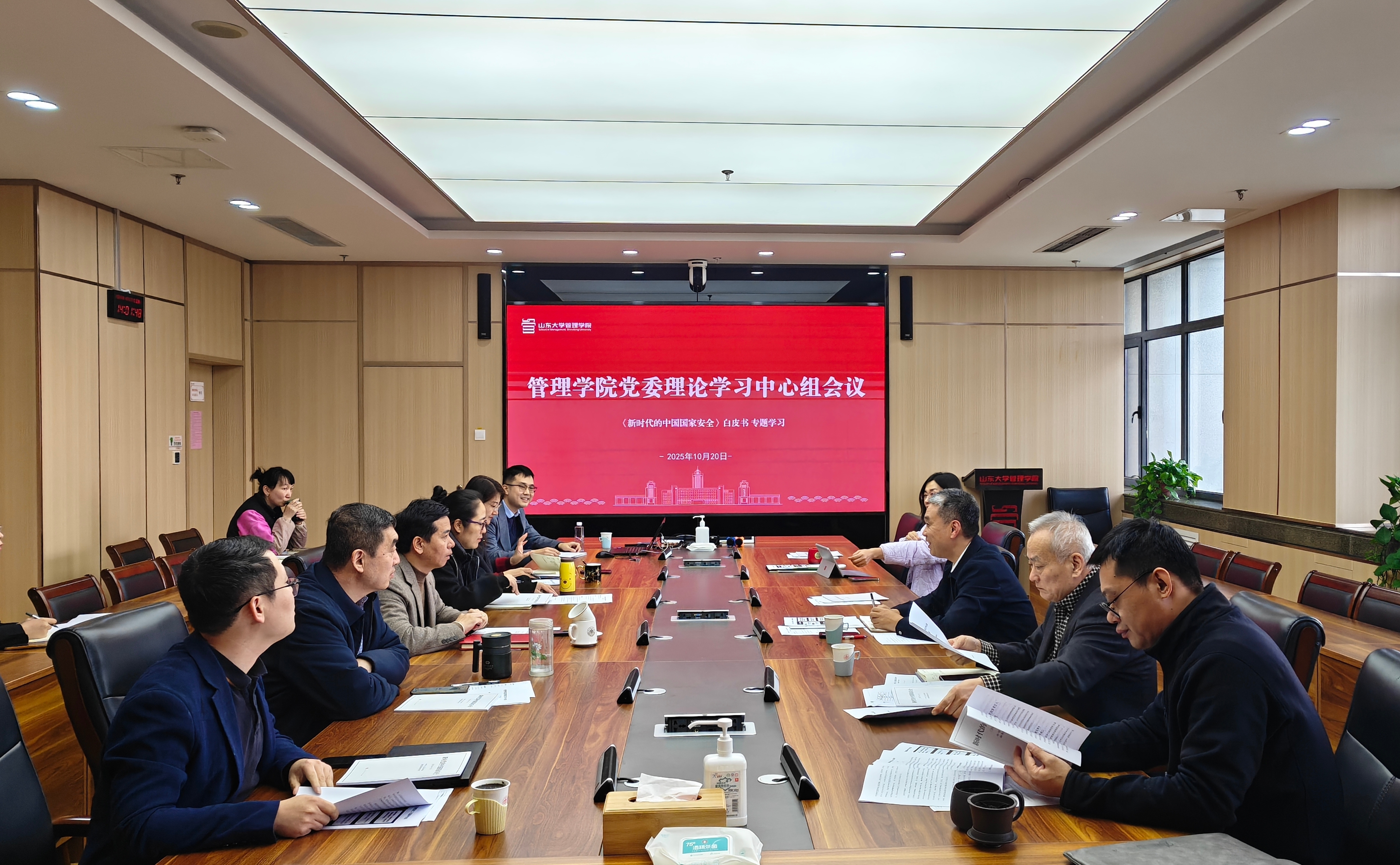 10月20日,管理学院召开党委理论学习中心组会议,专题学习《新时代的中国国家安全》白皮书。管理学院党委书记付岩志主持会议,领导班子成员、党委委员参加会议,学校首批教师“领航工作站”成员、公司财务学系助理研究员程雨涵列席会议。