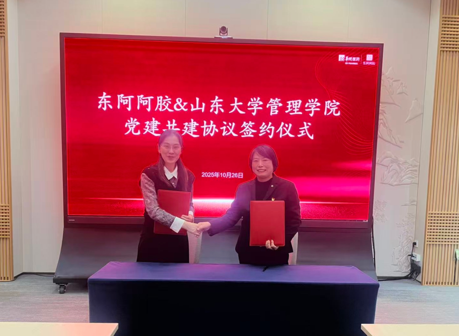 为探索基层党建工作创新路径,充分发挥党建引领核心作用,2025年10月26日,山东大学管理学院文化和旅游学系教工党支部与东阿阿胶文旅事业部党支部开展党建共建活动,并签订党建联建协议。管理学院党委书记付岩志、文化和旅游学系教工党支部书记、教授孙平,东阿阿胶股份有限公司文旅事业部文创营销总监马德军、合规管理部经理姜华、研学拓展部经理刘波出席活动。