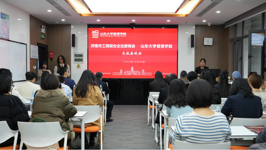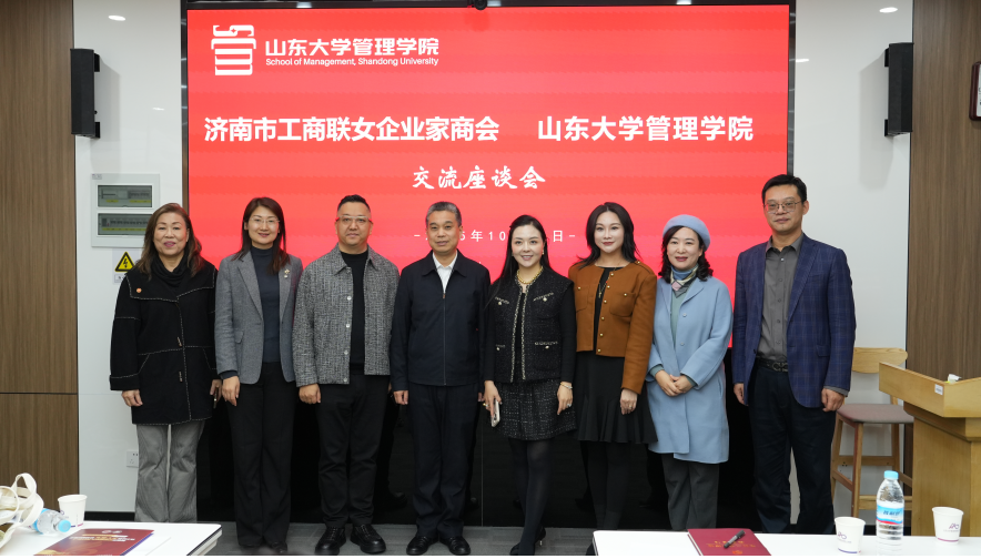 10月28日下午,济南市工商联女企业家商会会长马悦彤一行近60人到访管理学院开展交流座谈。学院党委书记付岩志,党委副书记周琳、李抗,正处级组织员卞江,副院长张晓峰等出席活动。