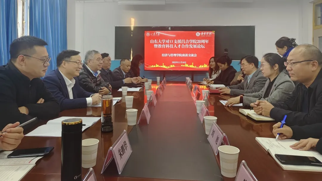 16日上午,山东大学对口支援昌吉学院20周年暨教育科技人才合作发展论坛之经济与管理学院座谈交流会举办,山东大学研究生院、管理学院、政治学与公共管理学院、经济学院及山东大学新疆研究院等领导参会。会上双方介绍学科建设、师资情况,围绕学院定位转型、人才引育、科研教学成果转化等核心议题展开深入探讨。