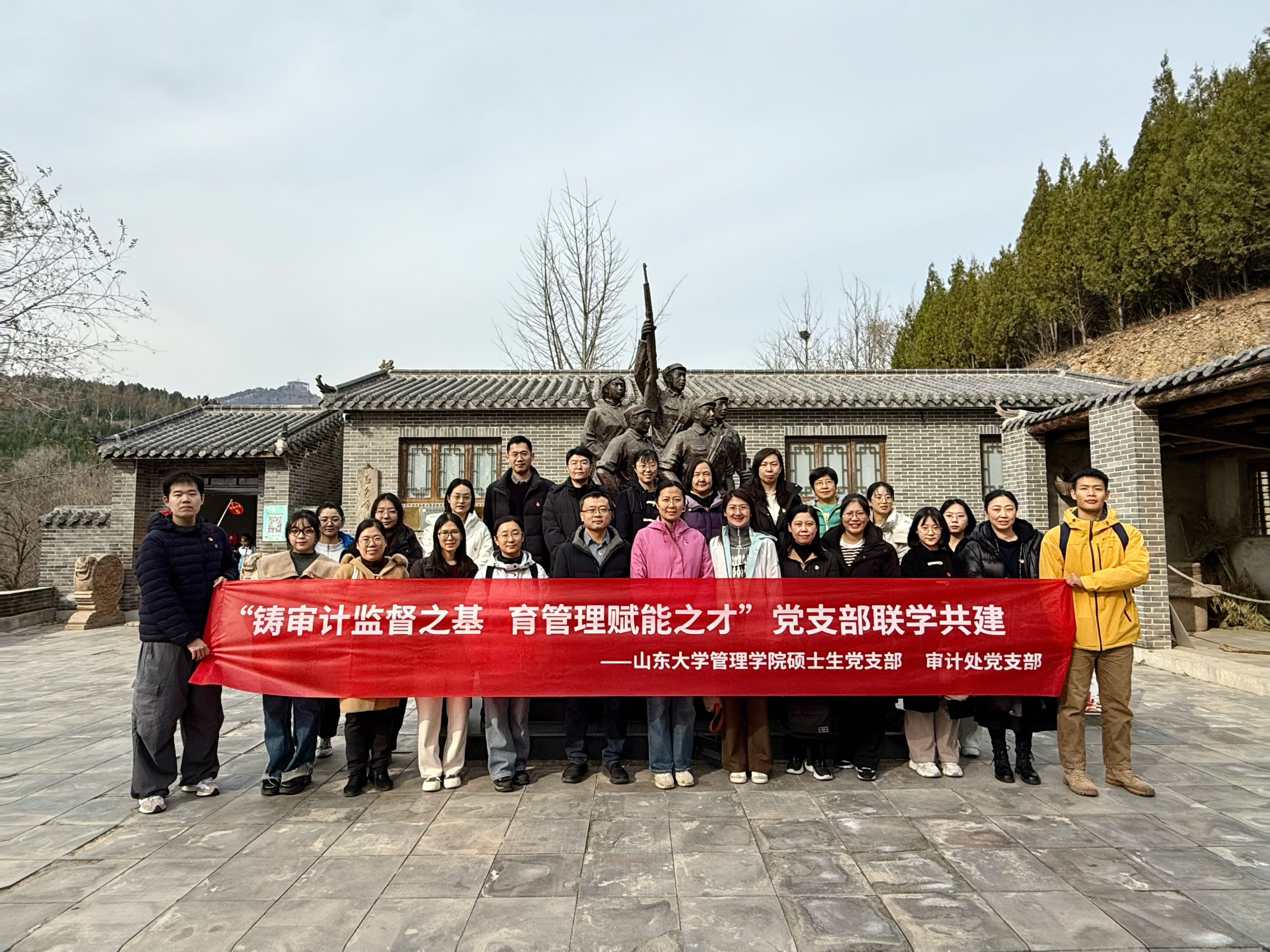 为深化党建引领作用,传承红色基因,搭建跨支部联学互动、经验互鉴、效能共促的共建平台,11月20日,山东大学管理学院硕士生党支部与审计处党支部联合开展“追寻红色足迹,传承革命精神”主题联学共建活动。山东大学审计处副处长范晔、孙盈、李晨,管理学院党委副书记李抗出席活动,审计处党支部全体党员与管理学院教师代表、硕士生党支部党员骨干共计24人参与此次活动。
