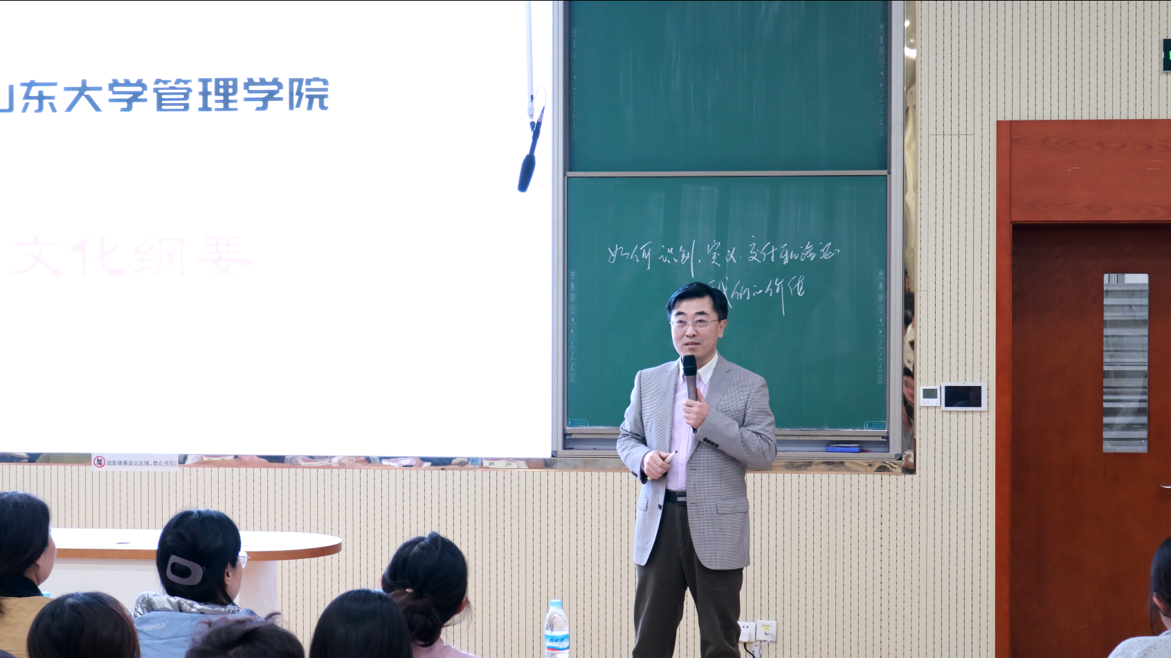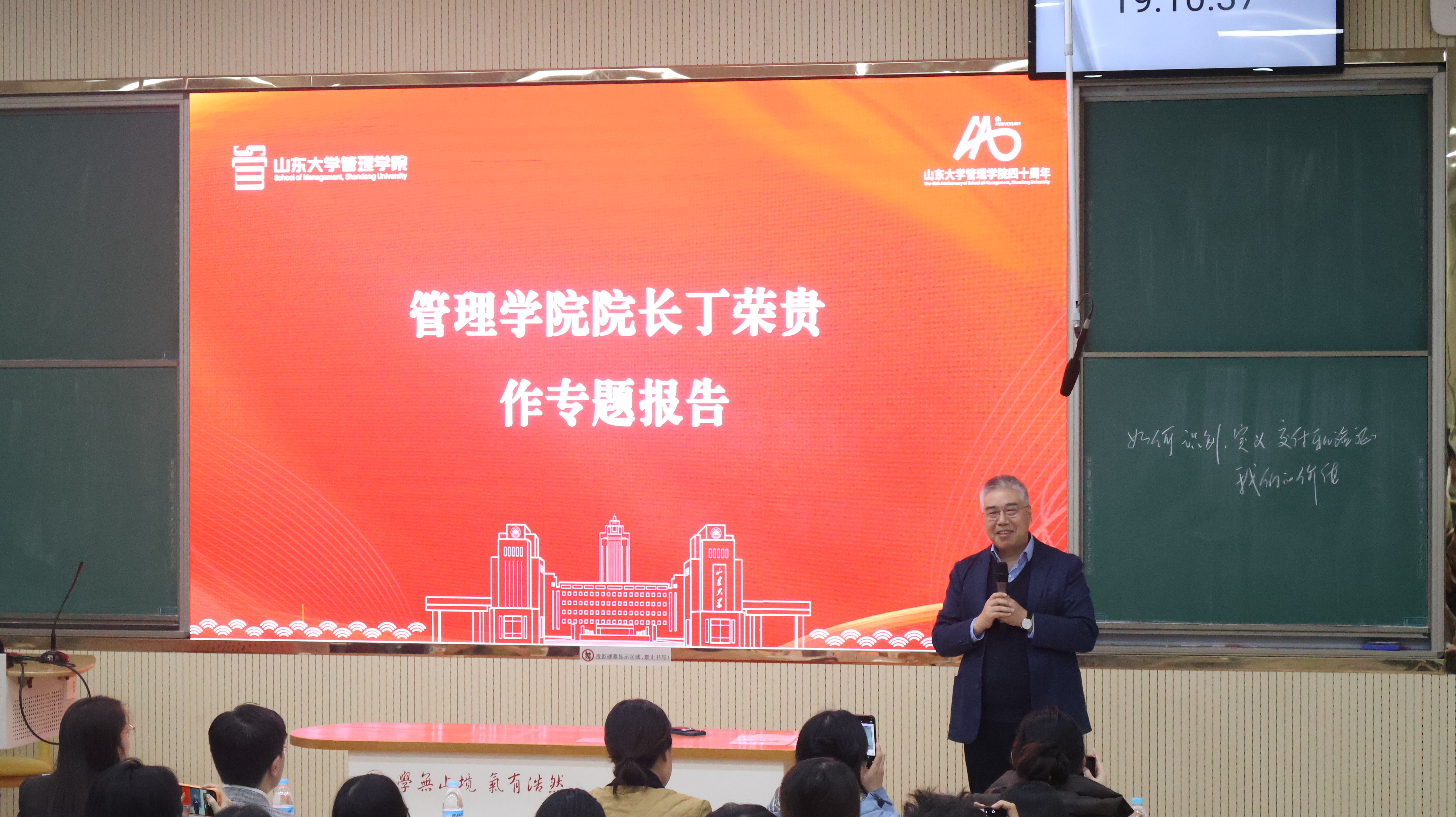 12月9日晚,山东大学管理学院“院长讲堂”系列活动之“传承·创新·卓越”文化纲要宣讲会于中心校区举行。本次活动以管理学院建院四十周年为契机,旨在深入解读与宣传推广学院文化纲要,引领师生凝聚共识。管理学院院长丁荣贵与战略与创新创业系主任辛杰教授作专题报告,党委副书记周琳、李抗出席活动。