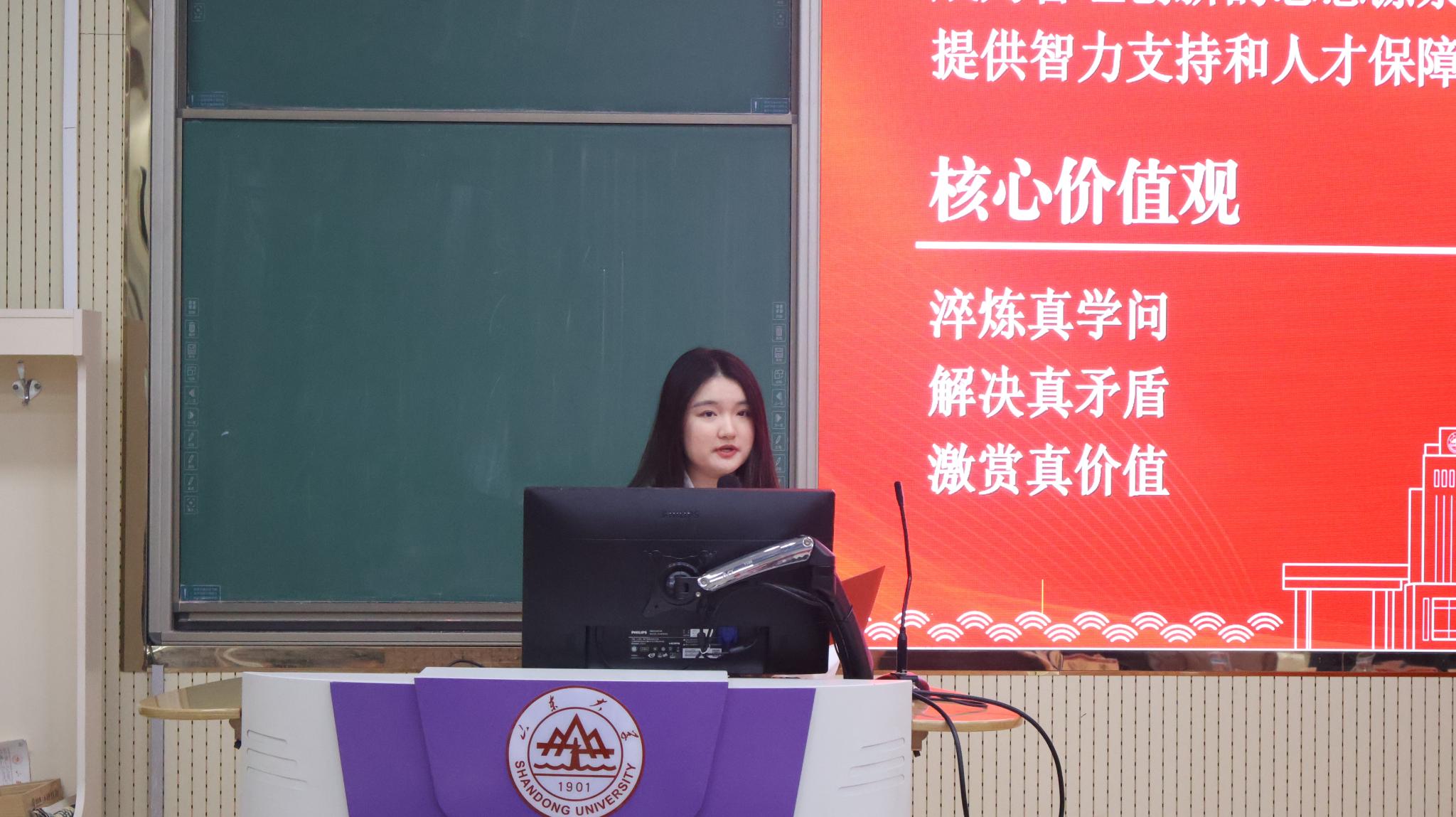 学院研究生会执行主席宋春雨现场领读了《山东大学管理学院文化纲要》(以下简称《纲要》)主要内容,带领与会师生集体诵读并重温了感悟《纲要》的文本内涵。现场围绕产教融合角色担当、学生工作与文化融合、实践能力培养等议题展开互动交流。
