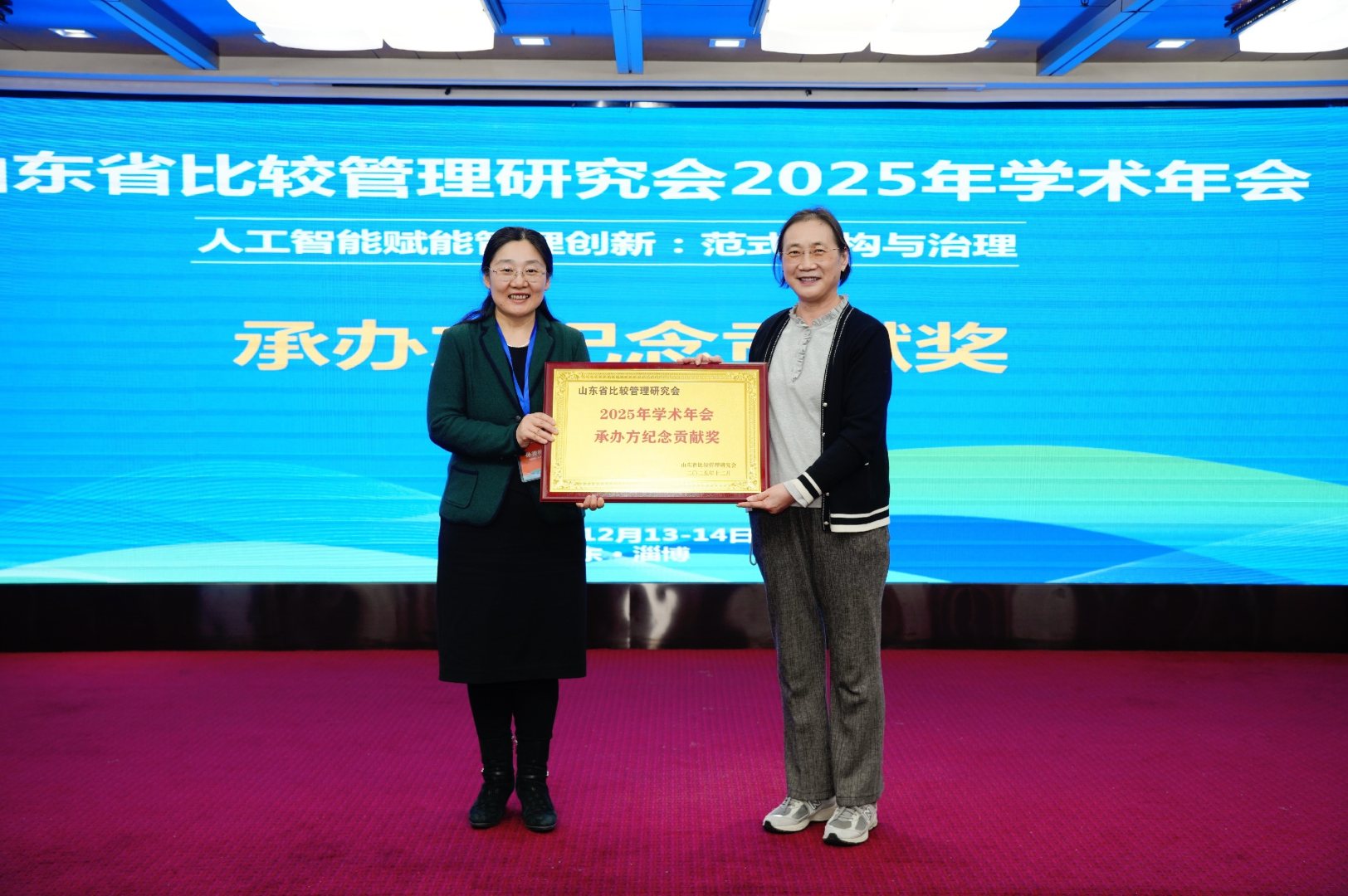 12月13日至14日,以“人工智能赋能管理创新:范式重构与治理”为主题的山东省比较管理研究会2025年学术年会在山东省淄博市召开。此次会议由山东省比较管理研究会、山东理工大学主办,山东理工大学管理学院、山东大学“面向高质量发展的产业组织与企业成长”创新团队、黄河流域数据智能与低碳治理协同创新中心共同承办。