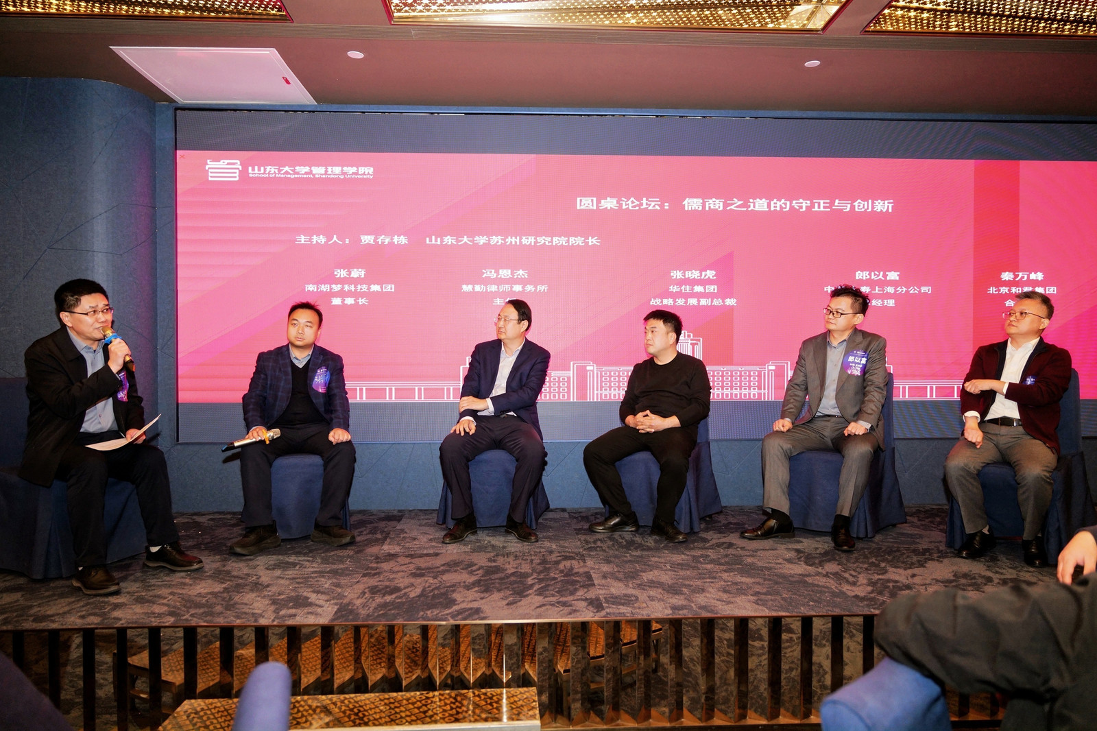 管理学院院长丁荣贵全面梳理了学院发展历程与建设成果,围绕学院未来发展的核心战略向校友作专题报告。在圆桌论坛环节,大会先后聚焦“儒商之道的守正与创新”“不同青春,同一底色”两个主题,邀请校友代表共同探讨传统文化与现代管理的融合之道,阐述不同年代的成长故事,交织成一幅生动的管院发展画卷。