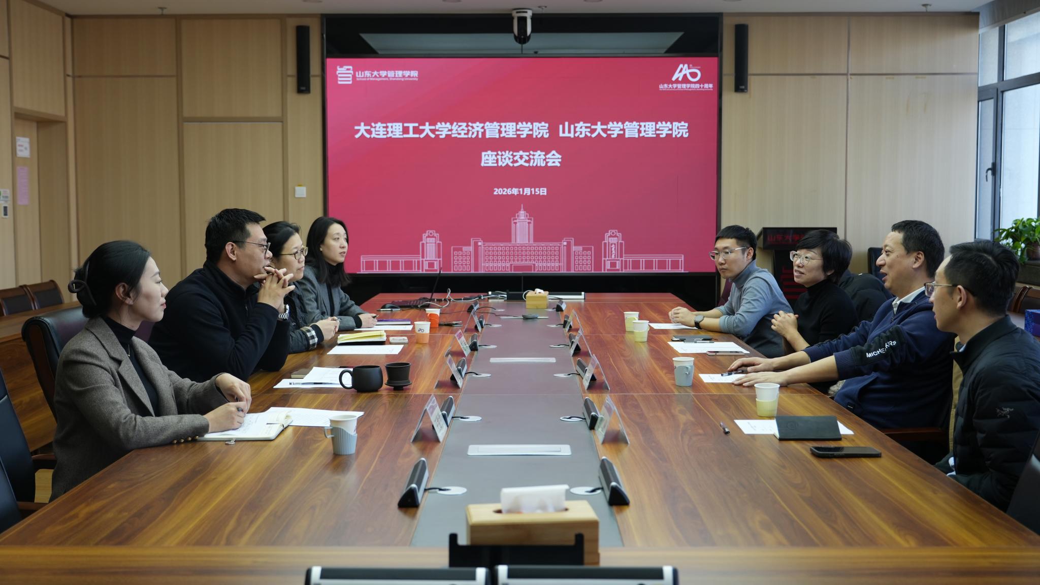 为深化专业学位研究生教育改革,探索招生培养、产教融合、品牌建设及国际化发展的新路径,1月15日下午,山东大学管理学院与大连理工大学经济管理学院举行座谈交流会,双方围绕专业学位研究生教育核心工作展开深入探讨,以互学互鉴促提升,以交流探讨谋发展。