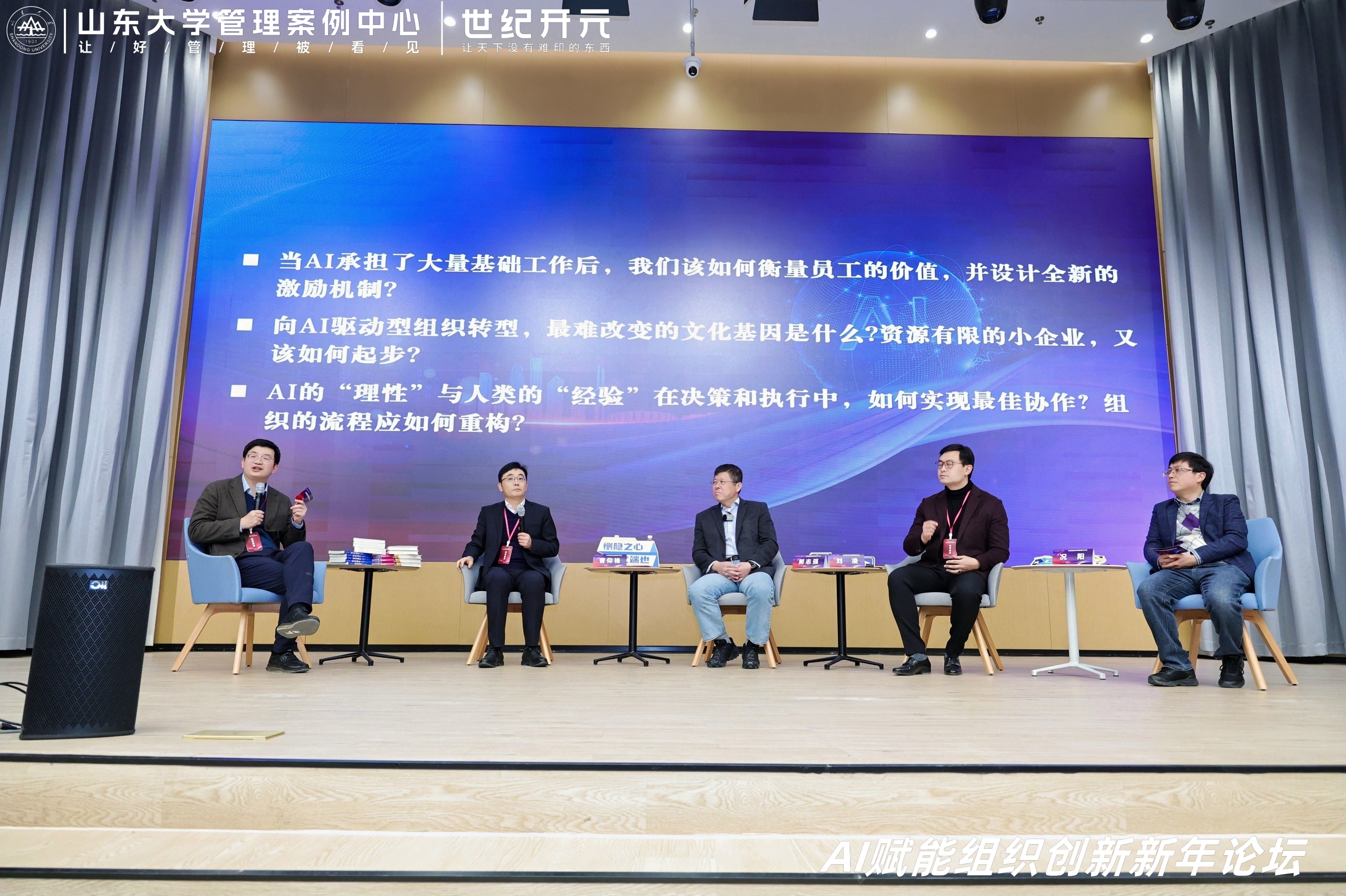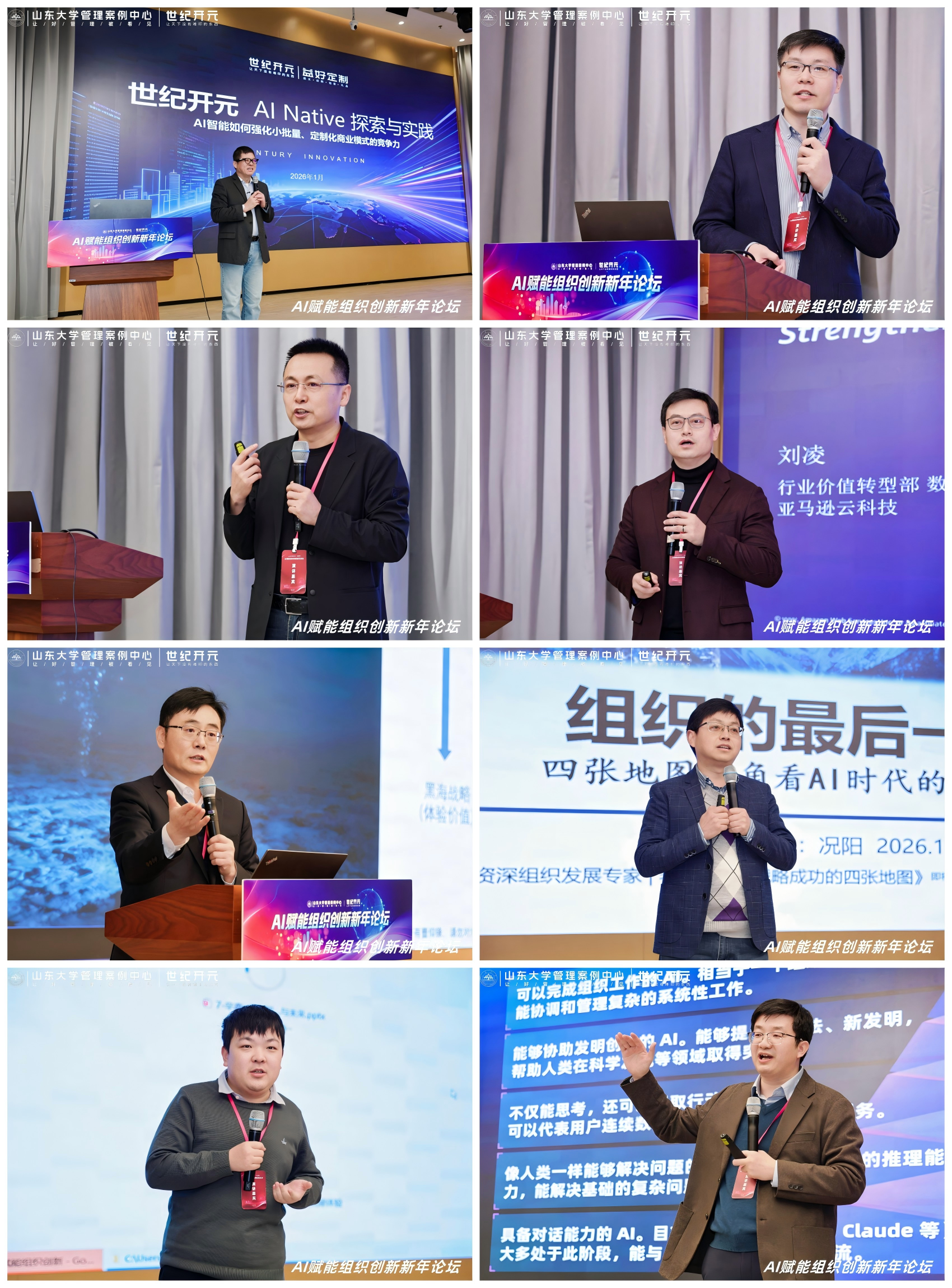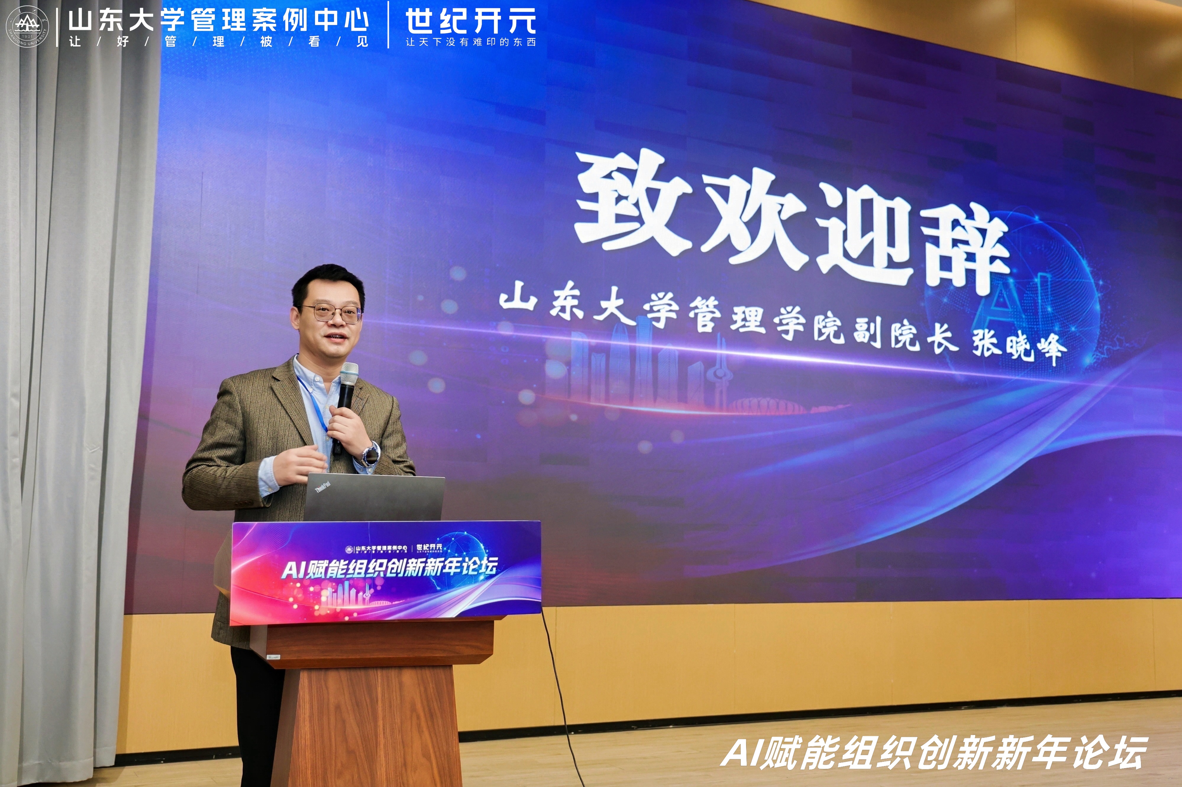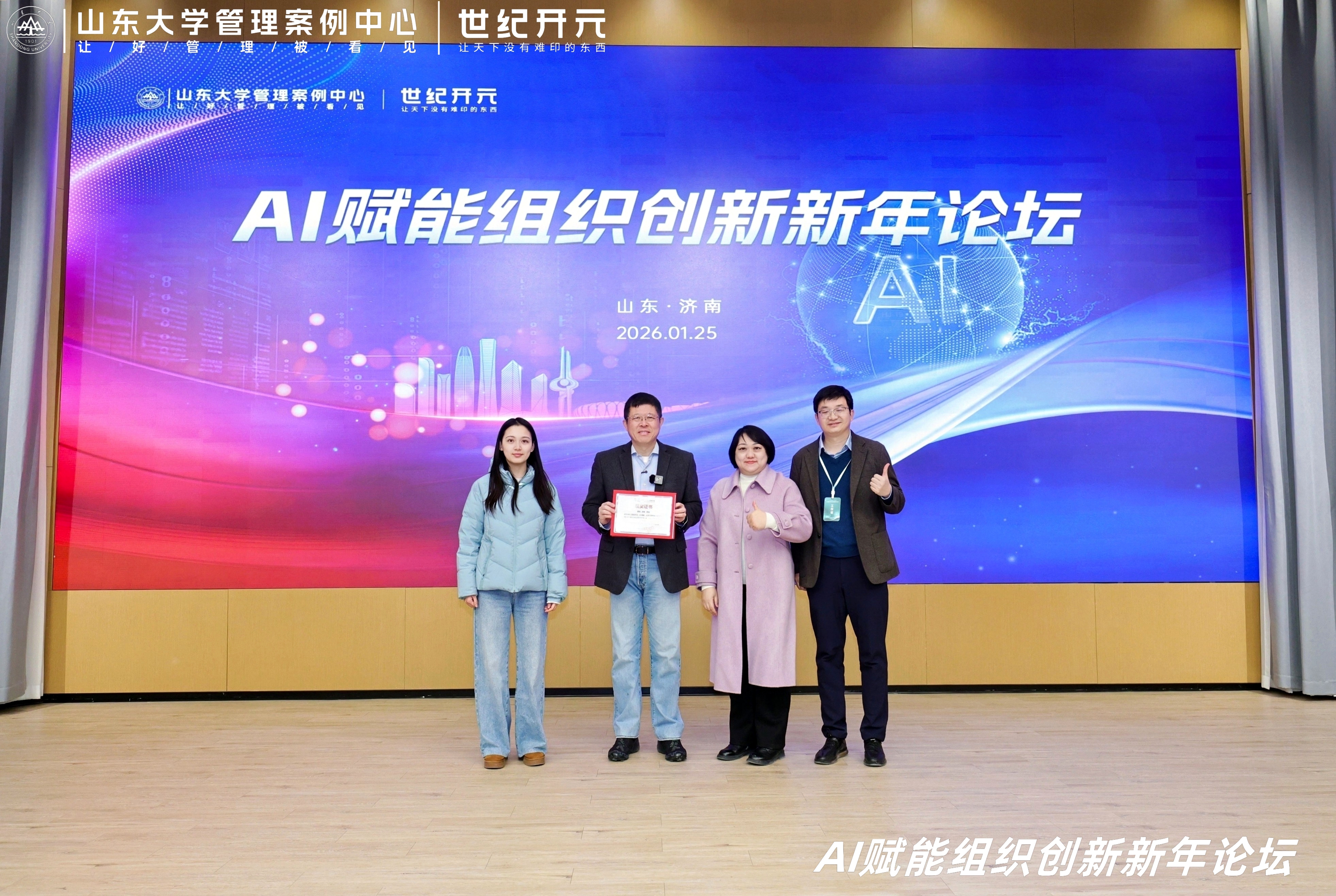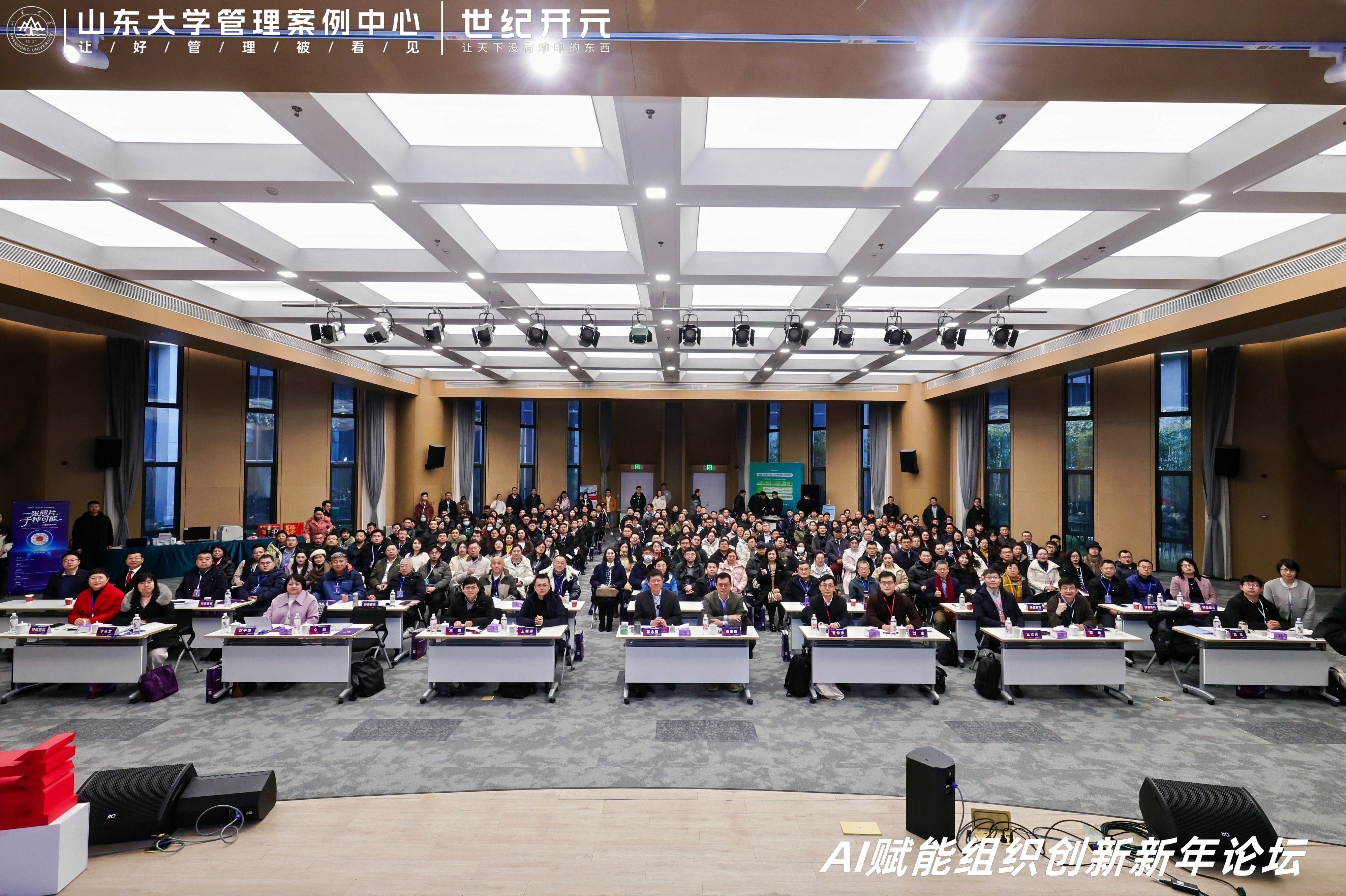 1月25日,由山东大学管理案例中心主办、世纪开元承办的“AI赋能组织创新新年论坛”在济南召开。本次论坛围绕AI时代下的组织变革、商业模式创新与领导力重塑等议题展开深度对话,260余位学界与业界代表参会。