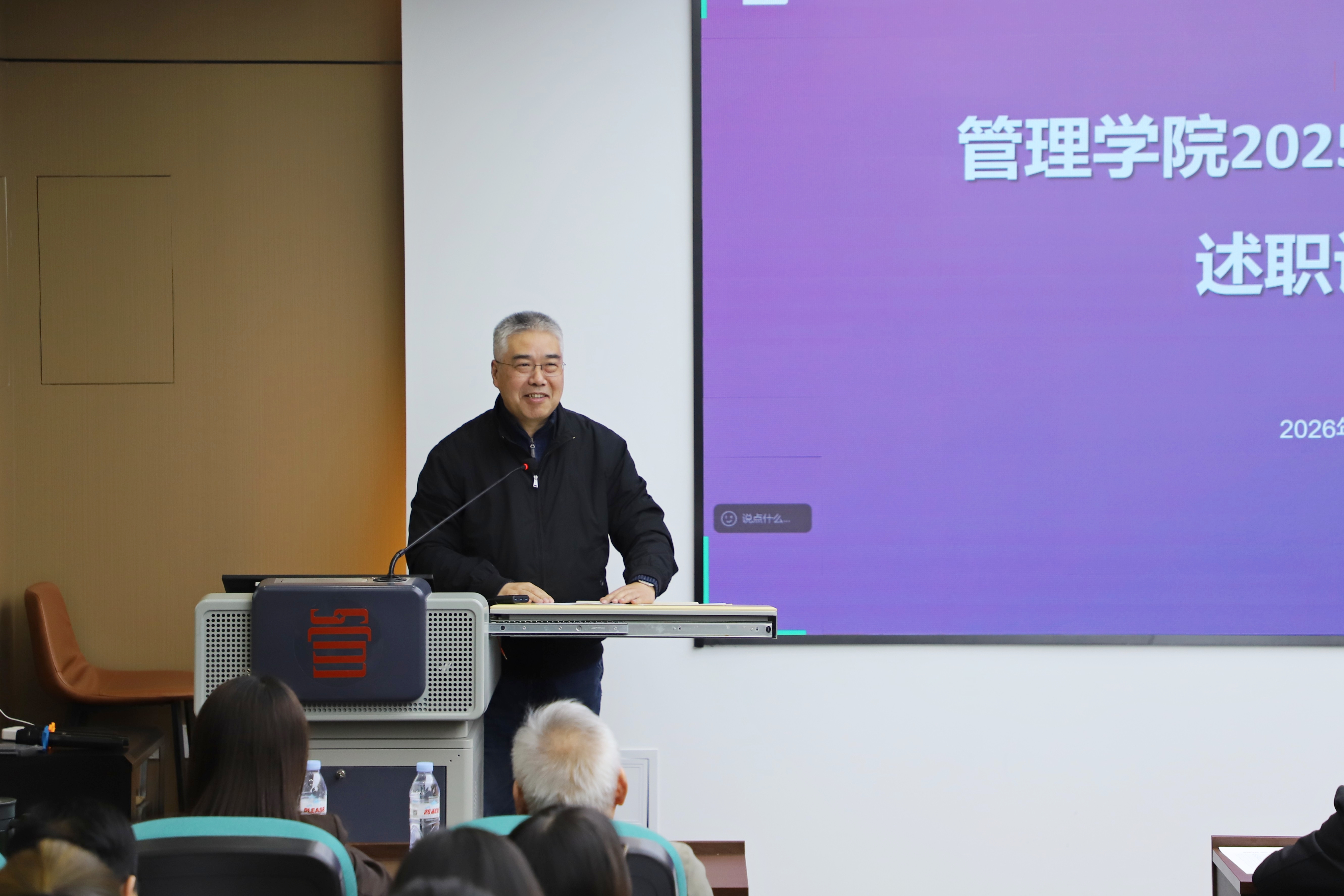 为全面总结2025年度行政管理工作成效,系统考核行政人员年度工作业绩与管理服务水平,1月27日下午,山东大学管理学院召开2025年度行政人员述职评议会。院长丁荣贵、党委书记付岩志等学院领导班子成员,各系主任、教工党支部书记及教师代表出席会议。正处级辅导员石清云主持会议。