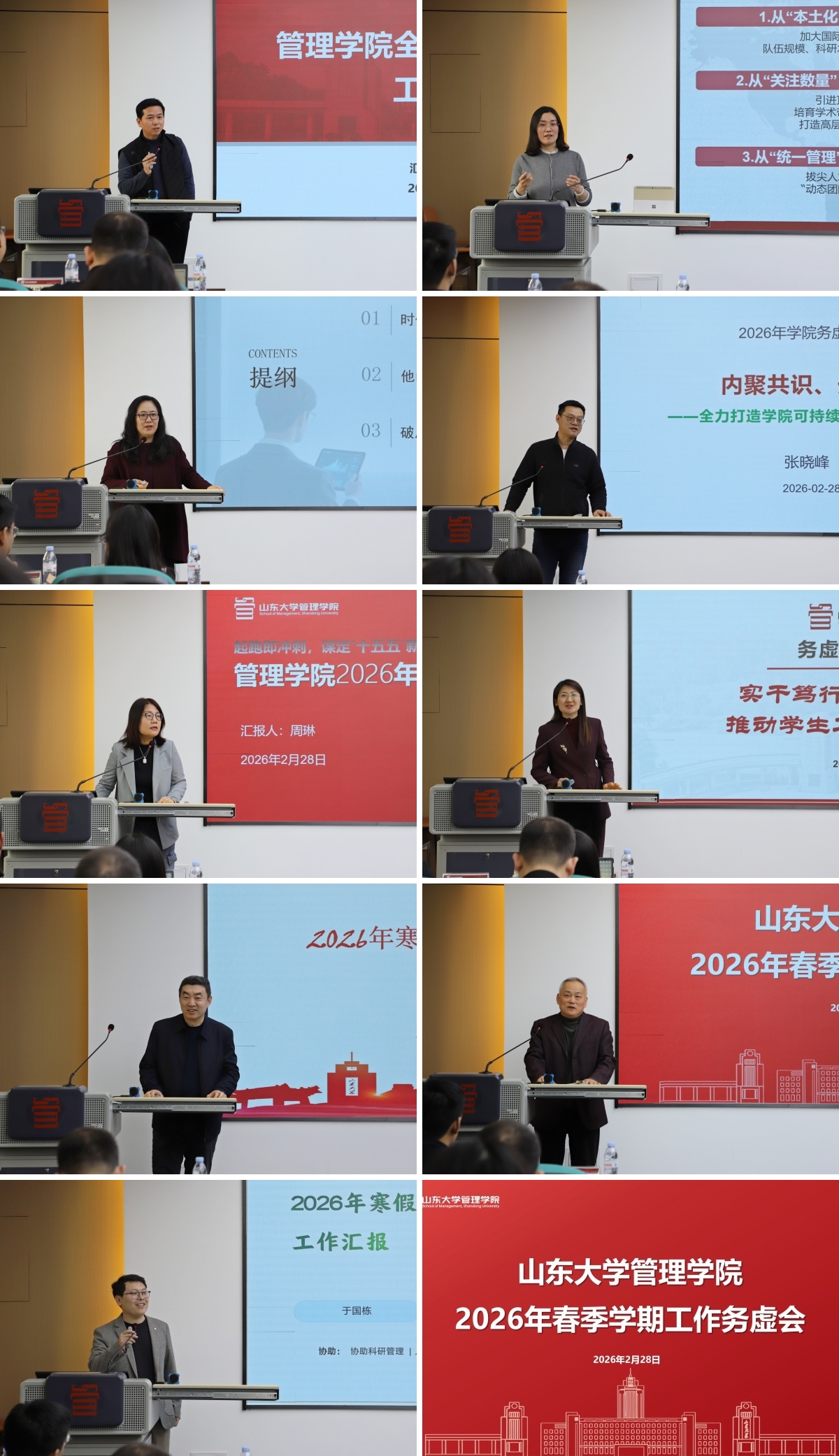 领导班子成员围绕会议主题,结合分管工作,就新学期教学科研重点任务、“十五五”规划落地实施、学科建设提质、专业招生优化、教师发展保障、行政服务升级等核心议题进行专题汇报,精准锚定新学期工作的发力点和突破口。